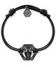 Bransoletka Philipp Plein Linked PJYEA03BU to wyrazisty męski dodatek, wykonany z plecionego sznurka i ozdobiony zawieszką ze stali szlachetnej z recyklingu. Charakterystyczna czaszka osadzona w sześciokątnym kształcie przyciąga wzrok i nadaje całości nowoczesnego stylu. Idealna dla mężczyzn, którzy lubią biżuterię z charakterem.
