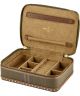 Etui podróżne Wolf Ida 190042 w limitowanej edycji z okazji 190-lecia marki to doskonałe połączenie funkcjonalności, elegancji i odpowiedzialności ekologicznej. Zewnętrzna część wykonana z płótna pochodzącego z materiałów recyklingowych i wykończona skórą z garbarni z certyfikatem złotym stanowi solidną i przyjazną środowisku ochronę dla Twojej biżuterii. Dzięki górnemu uchwytowi i mosiężnym ćwiekom, etui zyskuje stylowy wygląd, a wnętrze wyposażone w przegródki z podszewką LusterLoc™ zapewnia bezpieczeństwo. Wewnątrz znajduje się pojemnik na kolczyki, rolka na pierścionki oraz 2 wyjmowane tacki z 6 małymi przegródkami i 1 drążkiem na pierścionki/kolczyki. Dodatkowo, wyjmowana kieszeń zapinana na zamek pozwala na wygodne przechowywanie innych drobnych akcesoriów. Idealne etui dla osób, które poszukują eleganckiego, ale także praktycznego rozwiązania na podróże.