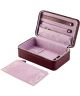 Etui na biżuterię Wolf x Liberty Ianthe Burgundy 381227 to stylowy organizer zaprojektowany z myślą o bezpiecznym przechowywaniu biżuterii. Model zamykany jest na suwak i wyróżnia się czerwonym wykończeniem z charakterystycznym wytłoczonym wzorem Liberty Ianthe. Etui wykonano ręcznie z materiału pochodzenia biologicznego, a całość uzupełniają złote detale. Wnętrze pokryto miękkim ultrasuede oraz podszewką z technologią LusterLoc™, która wspiera ochronę biżuterii przed utratą blasku. Do dyspozycji przygotowano panel na kolczyki mieszczący 6 par kolczyków typu sztyft, panel na pierścionki, kieszonkę zapinaną na zamek oraz wyjmowaną saszetkę również zamykaną na zamek. W środku znajdują się także 3 uchwyty na naszyjniki zapinane na zatrzask z kieszonką. Produkt zapakowany jest w opakowanie WOLF X LIBERTY.
