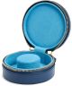Wolf Sophia Indigo 392317 to eleganckie, okrągłe etui na biżuterię zamykane na suwak, które łączy kompaktową formę z estetycznym wyglądem. Model wykonano z wegańskiej skóry w niebieskim kolorze, dzięki czemu prezentuje się stylowo i nowocześnie. Wnętrze wyłożono podszewką z technologią LusterLoc™, która pomaga chronić biżuterię przed matowieniem. W środku znajduje się przegródka przeznaczona na bransoletkę z miejscem na zawieszki, co pozwala wygodnie przechowywać ulubione elementy biżuterii.