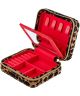 Wolf Savanna Leopard 395011 to eleganckie etui na biżuterię zapinane na suwak, które łączy praktyczną konstrukcję z wyrazistym designem. Zewnętrzną część wykonano z wegańskiej skóry z recyklingu o strukturze nubuku i ozdobiono wielokolorowym wzorem lamparta. Wnętrze pokryto podszewką z technologią LusterLoc™, pomagającą ograniczać proces matowienia biżuterii. W środku przygotowano 4 uchwyty na naszyjniki, 16 miejsc na kolczyki, 7 rolek na pierścionki oraz 3 schowki, które umożliwiają wygodne uporządkowanie kolczyków, pierścionków i innych drobnych ozdób.