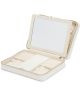 Wolf Maria 766153 to duże etui na biżuterię wykonane z naturalnej skóry. Zapina się na zamek błyskawiczny i zawiera 10 rolek na pierścionki, 2 otwarte przegródki, 1 przegródkę z pokrywką, 2 woreczki ze sznurkiem, 6 haczyków na naszyjniki z kieszonką oraz 1 drążek na pierścionki i 1 drążek na kolczyki.