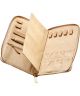Wolf Bella 781429 to elegancki portfel na biżuterię w ciepłym odcieniu mokki, wykonany z wysokiej jakości wegańskiej skóry z recyklingu. Złote detale i subtelne plisowanie dodają mu luksusowego charakteru. Wnętrze kryje aż 5 uchwytów na naszyjniki oraz 4 na bransoletki – każdy wyposażony w elastyczny woreczek ochronny, który zapobiega plątaniu i zarysowaniom. Dodatkowo znalazło się tu miejsce na przechowywanie kolczyków i pierścionków, a także zamykana na zamek kieszeń na drobne dodatki. Całość zabezpiecza podszewka z technologią LusterLoc™, która przeciwdziała matowieniu biżuterii.