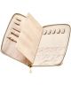 Portfel Wolf Bella 781453 to doskonałe rozwiązanie do przechowywania biżuterii, zamknięte w eleganckiej obudowie z beżowej skóry wegańskiej. Wnętrze zostało zaprojektowane tak, by pomieścić aż 5 naszyjników i 4 bransoletki, zabezpieczone elastycznymi woreczkami. Dodatkowo znalazło się tu miejsce na kolczyki i pierścionki oraz praktyczna kieszeń zapinana na suwak. Wszystko wyłożone materiałem LusterLoc™, który aktywnie chroni przed matowieniem i utlenianiem.