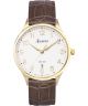 Zegarek męski Accurist Classic 37 mm 73001 to połączenie klasyki i nowoczesnego stylu, które z pewnością przyciągnie uwagę. Posiada on japoński kwarcowy mechanizm. Koperta zegarka wykonana jest ze stali szlachetnej w złotym kolorze. Biała tarcza jest przykryta szafirowym szkłem, które dopełnia całość. Brązowy skórzany pasek dodaje uroku i komfortu noszenia. Wodoszczelność do 50 m zapewnia odporność podczas kąpania się w wannie. Produkt dodatkowo posiada datownik z dniem miesiąca.