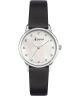 Accurist Dress 77002 to damski zegarek, który łączy subtelny design z klasycznym charakterem. Srebrna koperta ze stali szlachetnej o średnicy 28 mm otacza białą tarczę z masy perłowej. Całość zabezpieczono szafirowym szkłem. Skórzany pasek w klasycznym czarnym odcieniu zapewnia wygodę noszenia i doskonale komponuje się z całością. Model napędza mechanizm kwarcowy, a wodoszczelność do 50 m sprawia, że zegarek jest odporny na drobne zachlapania, np. podczas kąpieli.