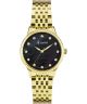 Zegarek damski Accurist Dress 77004 to model, który przyciąga uwagę swoim wyrafinowanym designem. Posiada złotą kopertę wykonaną ze stali szlachetnej, której szerokość wynosi 28 mm, co nadaje mu subtelnego charakteru. Tarcza z masy perłowej w kolorze czarnym jest przykryta szkłem szafirowym. Złota bransoleta ze stali szlachetnej dodaje zegarkowi klasy i stylu. Produkt jest zasilany mechanizmem kwarcowym i charakteryzuje się wodoszczelnością do 50 m, co sprawia, że jest odporny na drobne zachlapania, np. podczas kąpieli.