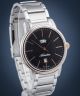 Zegarek męski Adriatica Classic A1144.R114Q działa w oparciu o mechanizm kwarcowy Ronda 517, Swiss Made. Srebrno-różowozłotą kopertę wykonano ze stali szlachetnej z powłoką PVD, z którą połączono srebrną bransoletę ze stali szlachetnej. Czarną tarczę zdobi szlif słoneczny i uzupełniają datownik dni miesiąca z lupą i datownik dni tygodnia. Cyferblat jest chroniony przez szkło szafirowe.