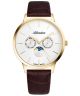 Zegarek męski Adriatica Multifunction SET A1274.1B13QF-SET to idealna propozycja prezentowa, ponieważ w zestawie znajduje się dodatkowa bransoleta mesh, która pozwala szybko zmienić styl modelu. Złota koperta ze stali szlachetnej została połączona z brązowym skórzanym paskiem, a srebrna tarcza mieści funkcje datownika dni miesiąca, datownika dni tygodnia oraz wskaźnik faz księżyca. Za pracę zegarka odpowiada kwarcowy mechanizm Swiss Made Ronda 706, a za ochronę tarczy odpowiada trudne do zarysowania szkło szafirowe. Wodoszczelność 30 metrów oznacza odporność na niewielkie zachlapania.