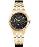 Adriatica Sapphire Moonphase A3337.1116QF to zegarek damski Swiss Made w klasycznym stylu, utrzymany w złotej tonacji. Koperta ze stali szlachetnej o średnicy 34 mm oraz bransoleta w tym samym kolorze tworzą spójną konstrukcję. Fakturowana tarcza wyposażona została w datownik dni miesiąca, datownik dni tygodnia oraz wskaźnik faz księżyca. Mechanizm kwarcowy Swiss Made Ronda 706 odpowiada za działanie modelu, a wysokiej jakości szafirowe szkło chroni tarczę. Wodoszczelność na poziomie 50 metrów chroni zegarek przed zachlapaniami. Zegarek objęty jest 2-letnią gwarancją.