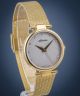 Adriatica Milano A3689.1147Q to damski zegarek, który będzie stanowił eleganckie dopełnienie codziennych stylizacji. W złotej kopercie ze stali szlachetnej umieszczono szarą giloszowaną tarczę zdobioną kryształkami umieszczonymi w miejscu indeksów. Całość uzupełnia złota, meshowa bransoleta. Model działa na podstawie mechanizmu kwarcowego Ronda 763 Swiss Made.