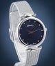Zegarek damski Adriatica Fashion A3689.5145Q to połączenie pięknie zdobionej giloszowaniem niebieskiej tarczy ze srebrną kopertą ze stali szlachetnej i srebrną, meshową bransoletą. Dodatkowo na tarczy w miejscach indeksów umieszczono ozdobne kryształki. To subtelny, ale i elegancki dodatek do każdej stylizacji. Model działa w oparciu o mechanizm kwarcowy Ronda 763 Swiss Made.
