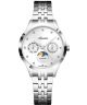 Adriatica Classic A3833.5143QF to damski zegarek w jednolitej srebrnej kolorystyce, który łączy elegancki wygląd z funkcjonalnością. Na tarczy umieszczono trzy subtarcze: wskaźnik faz księżyca oraz datowniki dni tygodnia i miesiąca, które podnoszą jego praktyczność. Koperta i bransoleta wykonane są ze stali szlachetnej w tym samym odcieniu. Model działa na szwajcarskim mechanizmie kwarcowym Ronda 706 i wyposażony jest w szafirowe szkło oraz wodoszczelność do 30 metrów, która chroni go przed niewielkimi zachlapaniami.