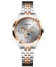 Adriatica Classic A3833.R147QF to damski zegarek utrzymany w jednolitej, złotej kolorystyce, który łączy klasyczny styl z dodatkowymi funkcjami. Na tarczy znajdują się trzy subtarcze: wskaźnik faz księżyca oraz datowniki dni tygodnia i miesiąca, co czyni model praktycznym i czytelnym. Koperta i bransoleta wykonane są ze stali szlachetnej w złotym odcieniu. Wewnątrz pracuje szwajcarski mechanizm kwarcowy Ronda 706 Swiss Made. Model wyposażono w szafirowe szkło oraz wodoszczelność do 30 metrów, która chroni go przed niewielkimi zachlapaniami.