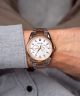 Męski zegarek Adriatica A8211.R113QF z serii Classic składa się z okrągłej srebrnej koperty wykonanej ze stali szlachetnej i bransolety wykonanej ze stali szlachetnej z powłoką PVD w kolorach srebra i różowego złota. Na obudowie znajduje się różowozłoty bezel. Srebrną giloszowaną tarczę wyposażono w datowniki dni tygodnia i miesiąca w postaci subtarcz. Wodoszczelność zegarka wynosi 50 metrów.