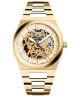 Zegarek męski Adriatica Skeleton Sapphire Automatic A8326.1111SA wyróżnia się złotą kolorystyką i tarczą typu skeleton. Koperta ze stali szlachetnej w złotym odcieniu, wykończona powłoką PVD, została połączona z dopasowaną bransoletą. Model napędzany jest mechanizmem automatycznym Swiss Made Catena SA800 / Sellita SW200, którego elementy można obserwować dzięki transparentnej kompozycji tarczy. Szafirowe szkło zwiększa odporność na zarysowania, a wskazówki pokryto powłoką luminescencyjną. Wodoszczelność do 50 metrów oznacza ochronę przed niewielkimi zachlapaniami i możliwością krótkiego kontaktu z wodą.