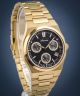 Zegarek męski Adriatica Multifunction A8326.1114QF opiera swoje działanie o mechanizm kwarcowy Ronda X30 Swiss Made. Czarną fakturowaną tarczę uzupełniają subtarcze z sekundnikiem, czasem dobowym i datownikiem dni tygodnia. Wskazówki i indeksy pokrywa powłoka luminescencyjna. Kopertę i bransoletę wykonano ze stali szlachetnej w kolorze złotym.