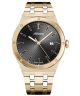 Adriatica Classic A8337.1116Q to męski model utrzymany w eleganckiej, złotej kolorystyce. Koperta oraz bransoleta ze stali w złotym odcieniu tworzą spójną i wyrazistą całość, która dobrze komponuje się z formalnym strojem. Czarna tarcza z efektem szlifu słonecznego została wzbogacona o giloszowanie, co nadaje jej głębi i podkreśla klasyczny charakter zegarka. Za działanie odpowiada mechanizm kwarcowy Swiss Made, a datownik dni miesiąca w formie okienka zwiększa funkcjonalność w codziennym użytkowaniu. Za ochronę tarczy odpowiada szkło szafirowe. Wodoszczelność na poziomie 50 metrów oznacza odporność na zachlapania, w tym krótkotrwały kontakt z wodą lub intensywny deszcz.