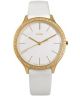 Zegarek damski Alfex Flat Line 5644-778 to doskonały towarzysz stylizacji smart-casual. Stalowa, wysadzana dookoła kryształkami, koperta pokryta powłoką PVD o barwie żółtego złota została zestawiona z białą tarczą oraz wykonanym z naturalnej skóry paskiem w tym samym kolorze. Tarczę zabezpiecza elastyczne szkiełko mineralne o piątym stopniu twardości w skali Mohs'a. Za działanie zegarka odpowiada niezwykle dokładny, zasilany bateryjnie, mechanizm kwarcowy. Wodoszczelność zegarka wynosi 30 m - oznacza to, że czasomierzowi nie zagrożą niewielkie zachlapania. Produkt jest zapakowany w oryginalne pudełko - do każdego egzemplarza dołączono kartę gwarancyjną ważną 24 miesiące od daty zakupu.