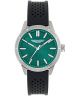 Zegarek męski Aston Martin Icon Hybrid Design Line MTIH1F503 to nowoczesny model o kompaktowej formie, oparty na 38-milimetrowej kopercie ze stali szlachetnej w srebrnym kolorze. Szczotkowane wykończenie podkreśla minimalistyczny, techniczny charakter konstrukcji. Mineralne szkło chroni tarczę z liniowymi indeksami i nadrukiem. Mechanizm kwarcowy odpowiada za działanie zegarka, a zakręcana koronka i zakręcany dekiel zwiększają szczelność modelu w kontakcie z wodą. Zielony silikonowy pasek nadaje zegarkowi bardziej sportowy wygląd. Wodoszczelność 100 metrów sprawia, że można korzystać z modelu również podczas pływania przy powierzchni.
