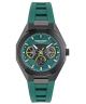 Zegarek męski Aston Martin Thrill Track Sport Chrono Series MTRI1F503 to sportowy model z kopertą ze stali szlachetnej w szarym kolorze i szczotkowanym wykończeniem, które nadaje mu technicznego charakteru. Mineralne szkło chroni tarczę z liniowymi indeksami, a czarny bezel dodaje całości wyrazistości. Mechanizm kwarcowy odpowiada za działanie zegarka. Zielony silikonowy pasek wprowadza mocny, sportowy akcent kolorystyczny. Wodoszczelność 100 metrów umożliwia korzystanie z modelu również podczas pływania przy powierzchni.