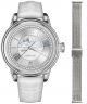 Aviator Douglas Moonflight V.1.33.0.250.4-W-SET to elegancki damski zegarek działający w oparciu o mechanizm kwarcowy. Okrągłą kopertę wykonano ze srebrnej stali slzachetnej. Tarczę o barwie koperty ozdobioną motywem chmur i gwiazd zabezpiecza odporne na zarysowanie szkło szafirowe. Pokrywająca je powłoka antyrefleksyjna umożliwia odczytanie godziny nawet w pełnym słońcu. Urządzenie wyposażono w przydatny datownik dni miesiąca umieszczony na wysokości godziny szóstej. Wodoszczelność 100 m chroni mechanizm przed zalaniem podczas pływania i nurkowania bez akwalungu. Gwarancja producenta wynosi 2 lata.
