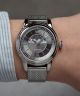 Aviator Douglas Moonflight Limited Edition V.1.33.0.254.5 to damski zegarek limitowany do 950 sztuk, który do pracy napędzany jest przez szwajcarski mechanizm kwarcowy Ronda 708 łożyskowany na 13 kamieniach z rezerwą chodu wynoszącą 54 miesiące. Szarą tarczę w stylu art deco zdobi szlif słoneczny i uzupełnia datownik dni miesiąca oraz wskaźnik faz księżyca z masą perłową. Wskazówki i indeksy pokryto powłoką Super-LumiNova. Cyferblat zabezpiecza szafirowe szkło z antyrefleksem. Srebrna koperta ze stali szlachetnej połączona jest z meshową bransoletą, która posiada zapięcie motylkowe. Na deklu zegarka znajdziemy wygrawerowaną sylwetką samolotu Douglas DC-3 na tle nocnego nieba.