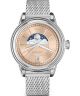 Srebrno-beżowy zegarek damski Aviator Douglas Moonflight Limited Edition V.1.33.0.259.5 powstał w ramach liczącej 950 sztuk limitacji. Pod szkłem szafirowym z antyrefleksem znajduje się szlifowana tarcza ze wskaźnikiem faz księżyca, datownikiem i powłoką Super-LumiNova na wskazówkach. Do wykonania koperty i bransolety mesh użyto stali szlachetnej. Za działanie całości odpowiada kwarcowy mechanizm Ronda 708 Swiss Made. Został on zamknięty w obudowie, którą zamyka od spodu dekiel z grawerem przedstawiającym samolot Douglas DC-3. To właśnie ta maszyna stanowiła inspirację do stworzenia produktu. Dodatkowo model został wyposażony w proste w użytkowaniu zapięcie motylkowe, a jego wodoszczelność liczy 100 metrów.