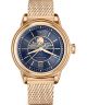 Aviator Douglas Moonflight Limited Edition V.1.33.2.256.5 to zegarek damski z edycji limitowanej do 950 egzemplarzy. W ruch wprawia go mechanizm kwarcowy Ronda 708 Swiss Made. Model stanowi eleganckie połączenie różowego złota i granatu. Zarówno koperta, jak i bransoleta mesh są wykonane ze stali szlachetnej z powłoką PVD. Szlifowaną tarczę zabezpiecza przed zniszczeniem szkło szafirowe z antyrefleksem. Do funkcji produktu należą dekoracyjny wskaźnik faz księżyca, datownik dni miesiąca oraz pokryte powłoką Super-LumiNova wskazówki. Na deklu znajdziemy ozdobny grawer z wizerunkiem samolotu Douglas DC-3. Wodoszczelność zegarka wynosi 100 metrów.
