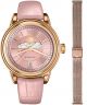 Aviator Douglas Moonflight V.1.33.2.258.4-W-SET to elegancki damski zegarek urzekający delikatną kolorystyką pudrowego różu oraz gustownym zdobieniem tarczy subtelnym giloszem, szlifem słonecznym i białą masą perłową. Okrągłą stalową kopertę pokryto PVD w kolorze różowego złota. Tarczę ozdobioną motywem chmur i gwiazd (wskaźnik faz księżyca) zabezpiecza odporne szkło szafirowe. Urządzenie wyposażono w przydatny datownik dni miesiąca, umieszczony na wysokości godziny szóstej, oraz powłokę luminescencyjną. Wodoszczelność 100 m chroni mechanizm przed zalaniem podczas pływania. Gwarancja producenta wynosi 2 lata.