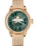 Limitowany do 950 egzemplarzy zegarek Aviator Douglas Moonflight Limited Edition V.1.33.2.263.5 to stylowe połączenie zieleni i różowego złota. Ten damski model działa w oparciu o mechanizm kwarcowy Ronda 708 Swiss Made. Zarówno koperta, jak i bransoleta mesh wykonane są ze stali szlachetnej pokrytej powłoką PVD. Szlifowaną tarczę przed uszkodzeniem chroni szkło szafirowe z antyrefleksem. Obudowę zamyka od spodu dekiel z ozdobnym grawerem samolotu Douglas DC-3. Na funkcjonalność produktu składają się wskaźnik faz księżyca, datownik dni miesiąca oraz wskazówki pokryte świecącą w ciemności substancją Super-LumiNova. Wodoszczelność zegarka wynosi 10 ATM.