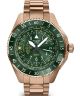 Aviator Airacobra GMT V.1.37.2.309.5 to propozycja lotniczego zegarka dla panów, którzy lubią funkcjonalne, przydatne podczas podróży i wyróżniające się dodatki. Klasy nadaje całości połączenie różowozłotej obudowy ze stali szlachetnej z zieloną tarczą. Zabezpiecza ją szkło szafirowe z antyrefleksem. W kopercie umieszczono mechanizm kwarcowy Swiss Made Ronda 515.24H z datownikiem, GMT i czasem światowym. W ciemności czytelność zapewnia masa Super-LumiNova.