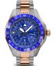 Aviator Airacobra GMT V.1.37.3.308.5 to elegancki szwajcarski zegarek lotniczy. Z niebieską tarczą komponuje się bransoleta i koperta wykonane ze stali szlachetnej w srebrnym i różowozłotym kolorze. Czytelność godziny zapewniają znaczniki pokryte Super-LumiNovą. Cyferblat zabezpiecza szkło szafirowe z antyrefleksem. Panowie, których interesują dalekie podróże i latanie samolotami, będą zadowoleni z funkcji daty, czasu GMT i czasu światowego. Do tego precyzję chodu zapewnia mechanizm kwarcowy Ronda 515.24H.