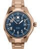 Aviator Airacobra 43 Automatic V.3.39.2.335.5 to stylowy zegarek męski, wyposażony w szwajcarski mechanizm automatyczny Sellita SW200-1 z 38-godzinną rezerwą chodu. Koperta w kolorze różowego złota harmonizuje z niebieską tarczą, dodając zegarkowi elegancji. Model posiada datownik dni miesiąca, szafirowe szkło oraz powłokę Super-LumiNova, która zapewnia dobrą widoczność. Wodoodporność 100 metrów pozwala na użytkowanie zegarka podczas pływania.
