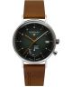 Elegancki, minimalistyczny zegarek sprawdzi się w kolekcji każdego współczesnego mężczyzny. Na model Bauhaus Solar Power Reserve 2112-4 składa się stalowa koperta w okrągłym kształcie, brązowy pasek uszyty ze skóry naturalnej oraz zielony cyferblat. Na jego powierzchni znajdują się wskaźnik rezerwy chodu (mechanizmu solarnego Seiko VR43B) oraz datownik dni miesiąca, całość natomiast pokryto utwardzanym szkiełkiem mineralnym K1.
