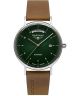 Zegarek męski Bauhaus Automatic 2162-4 to dodatek dla zwolenników minimalizmu. Zieloną tarczę z datownikami Day-Date osadzono w kopercie ze srebrnej stali szlachetnej i zabezpieczono szkłem mineralnym. Całość wieńczy pasek uszyty z brązowej skóry. Przez zakręcany, transparentny dekiel możemy podziwiać pracę japońskiego mechanizmu automatycznego Citizen Miyota 8285, którego rezerwa chodu liczy 42 godziny.