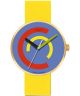 Zegarek Bauhaus Walter Gropius Centum WG.010-04 to model inspirowany estetyką Bauhausu, w którym prosta forma została uzupełniona wyrazistymi kolorami. Koperta ze stali szlachetnej została pokryta powłoką PVD, co nadaje jej złoty kolor i kontrastuje z żółtym paskiem skórzanym. Wielokolorowa tarcza przyciąga uwagę i stanowi charakterystyczny element projektu. Cyferblat osłania szafirowe szkło, które chroni go przed działaniem czynników zewnętrznych. Model działa w oparciu o mechanizm kwarcowy Miyota 2035. Wodoszczelność na poziomie 50 metrów chroni model przed zachlapaniami i pozwala na krótkotrwały kontakt z wodą.