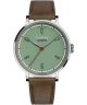 Bauhaus Walter Gropius New Bauhaus Dessau 1925 WG.N003-04 to zegarek zaprojektowany z myślą o osobach ceniących przejrzystość formy i funkcjonalność. Smukła koperta w połączeniu z paskiem o szerokości 18 mm sprawia, że model dobrze układa się na nadgarstku i zapewnia komfort noszenia. Zielony cyferblat w zestawieniu z brązowym paskiem tworzy oryginalne, ale jednocześnie harmonijne połączenie. Tarcza została pokryta szkłem szafirowym, które osłania ją przed wpływem czynników zewnętrznych. Urządzenie działa dzięki mechanizmowi kwarcowemu Miyota GL32. Wodoszczelność 50 m pozwala na swobodne użytkowanie zegarka podczas kąpieli.
