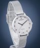 Zegarek damski Bisset Soleure BSBF30SISX03BX to propozycja, która zapewni Ci delikatne dopełnienie stylizacji. Wodoszczelność określona na poziomie 3 ATM oznacza, że urządzenie jest odporne na drobne zachlapania, np. gdy myjemy ręce. Urządzenie jest wprawiane w ruch przez kwarcowy mechanizm. Indeksy w formie błyszczących kryształków znajdują się na subtelnej, białej tarczy pokrytej twardym, szafirowym szkiełkiem.