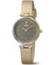 Boccia Titanium Classic 3278-04 to damski zegarek, który do pracy napędza mechanizm kwarcowy Ronda 751. Srebrno-złota koperta z tytanu połączona jest ze skórzanym, beżowym paskiem. Szara tarcza uzupełniona jest o indeksy punktowe i jeden w postaci rzymskiej XII.