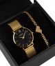 Zegarek BOWA London LO334-14-164M-419-02 sprzedawany jest w zestawie z bransoletką na łańcuszku z zawieszką w kształcie serca, co czyni go doskonałym pomysłem na prezent. To propozycja dla pań ceniących eleganckie zegarki z interesującymi detalami. Model został wyposażony w bransoletę ze stali szlachetnej typu mesh. Czarne tło tarczy, przykrytej szkłem mineralnym, pięknie eksponuje złote wskazówki i indeksy, a godzina dwunasta jest oznaczona cyfrą rzymską. Mechanizm kwarcowy Miyota 2025 odpowiada za działanie zegarka. Wodoszczelność na poziomie 30 metrów chroni wnętrze przed niewielkimi zachlapaniami. Produkt objęty jest trzyletnią gwarancją i zapakowany w eleganckie pudełko. Bransoletka wykonana ze stali szlachetnej jest regulowana, a jej obwód wynosi: 180 - 260 mm.