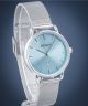 BOWA Milan Ice-Blue Silver Mesh 34 MI345-95-165M zachwyca lekką kolorystyką i prostotą, nawiązującą do włoskiego stylu. Niebieska tarcza o chłodnym odcieniu została zestawiona ze srebrną kopertą i bransoletą mesh ze stali szlachetnej. Wewnątrz pracuje mechanizm kwarcowy Miyota VJ22, a całość przykryto mineralnym szkłem. Wodoszczelność 3 ATM oznacza podstawową ochronę przed drobnym kontaktem z wodą, np. deszczem czy przypadkowym zachlapaniem.