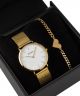 Zegarek damski BOWA New York Petite NY344-24-184M-419-02 sprzedawany jest w zestawie z bransoletką na łańcuszku z zawieszką w kształcie serca, co sprawia, że komplet ten doskonale sprawdzi się jako prezent. Biała tarcza z efektem szlifu słonecznego subtelnie odbija światło, kontrastując z kopertą i bransoletą mesh w złotym kolorze. Model wyposażono w japoński mechanizm kwarcowy Miyota 2025, mineralne szkło oraz wodoszczelność na poziomie 30 metrów, która chroni zegarek przed niewielkimi zachlapaniami. Bransoletka wykonana ze stali szlachetnej jest regulowana, a jej obwód wynosi: 180 - 260 mm.