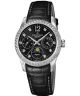 Candino Petite C4684/3 to damski zegarek działający na podstawie mechanizmu kwarcowego Swiss Made. Wyposażono go w datowniki dni miesiąca i tygodnia oraz wskaźnik faz księżyca. Czarna tarcza umieszczona jest w kopercie ze stali szlachetnej i zabezpieczona szafirowym szkiełkiem, Z kopertą połączono skórzany, czarny pasek.