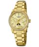 Zegarek damski Candino Petite C4689/2 został stworzony specjalnie dla miłośniczek koloru złotego. Analogowa tarcza z datownikiem dnia miesiąca, datownikiem dnia tygodnia i wskaźnikiem faz księżyca została ozdobiona delikatnymi kryształkami. Szkło szafirowe zapewnia ochronę cyferblatu przed negatywnym wpływem czynników zewnętrznych. Wodoszczelność na poziomie 5 ATM zabezpiecza szwajcarski mechanizm kwarcowy przed uszkodzeniem w przypadku większego zachlapania.