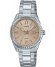 Zegarek damski Casio Standard LTP-1302DD-4A2VEF to klasyczna propozycja z japońskim mechanizmem kwarcowym, charakteryzująca się eleganckimi detalami. Koperta w kolorze srebrnym oraz bransoleta zostały wykonane ze stali szlachetnej. Model ten wyróżnia się żłobionym bezelem. Jasna, beżowa tarcza, chroniona szkłem mineralnym, wyposażona jest w praktyczny datownik dni miesiąca, ułatwiający szybką orientację w kalendarzu. Zegarek ma wodoszczelność na poziomie 30 metrów, co zapewnia podstawową ochronę przed niewielkimi zachlapaniami.