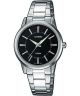 Zegarek damski Casio Classic LTP-1303D-1AER to propozycja utrzymana w ponadczasowym, klasycznym stylu, zaprojektowana z myślą o codziennym użytkowaniu. Koperta w srebrnym kolorze została wykonana z mosiądzu i połączona z dopasowaną bransoletą, tworząc spójną i elegancką całość. Czarna tarcza zapewnia czytelny kontrast dla wskazań i wpisuje się w klasyczną estetykę modelu. Za ochronę tarczy odpowiada szkło mineralne. Zegarek pracuje w oparciu o japoński mechanizm kwarcowy Casio 1330. Wodoszczelność na poziomie 50 metrów oznacza odporność na większe zachlapania.