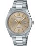Zegarek męski Casio Standard MTP-1302DD-9AVEF to elegancki model, w którym ponadczasowa srebrna estetyka łączy się z funkcjonalnością. Koperta i bransoleta ze stali szlachetnej tworzą spójną i solidną konstrukcję, uzupełnioną o żłobiony bezel. Jasna tarcza jest chroniona szkłem mineralnym, a jej wskazania są czytelne i minimalistyczne. Model zasilany jest japońskim mechanizmem kwarcowym. Dzięki swojemu uniwersalnemu wzornictwu jest to wszechstronny wybór. Wodoszczelność na poziomie 50 metrów zabezpiecza zegarek w kontakcie z wodą podczas codziennych czynności.