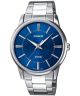 Casio Classic MTP-1303PD-2AVEG to klasyczny, srebrno-niebieski zegarek męski. Na ozdobionej szlifem słonecznym tarczy zabezpieczonej szkłem mineralnym znajdziemy wskazówki pokryte powłoką Neobrite. Dzięki niej łatwo odczytasz godzinę w ciemności. Kopertę modelu połączono z bransoletą ze stali szlachetnej.