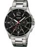 Casio MTP-1374PD-1AVEF to męski zegarek kwarcowy, który łączy elegancję z funkcjonalnością. Stal szlachetna, z której wykonano kopertę i bransoletę, zapewnia trwałość i uniwersalny wygląd. Czarna tarcza wyposażona jest w trzy sub-tarcze pokazujące datę, dzień tygodnia oraz czas w formacie 24-godzinnym, co ułatwia organizację dnia. Dodatkowo, powłoka Neobrite na wskazówkach i indeksach gwarantuje czytelność nawet w słabym oświetleniu.